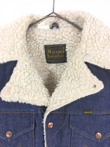 古着 70s USA製 Maverick 「Ranch Coat」 濃紺 ブルー デニム ボア ランチ コート Gジャン S