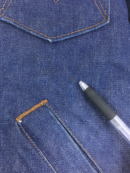 若干デニム糊が残る濃紺デニム。