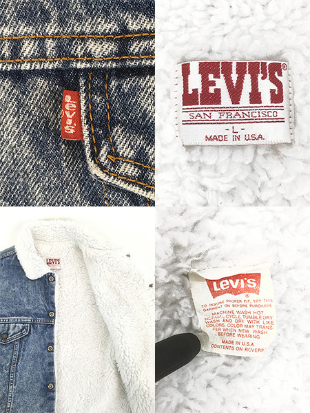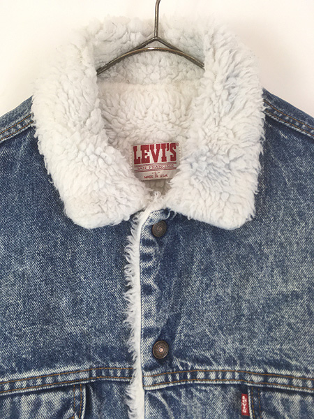古着 80s USA製 Levi's 70609-0219 ケミカル ブルー デニム ボア トラッカー ジャケット Gジャン L