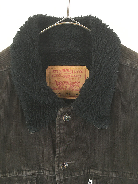 古着 90s Canada製 Levis 75589-1559 ブラウン コーデュロイ ボア トラッカー ジャケット ブルゾン M