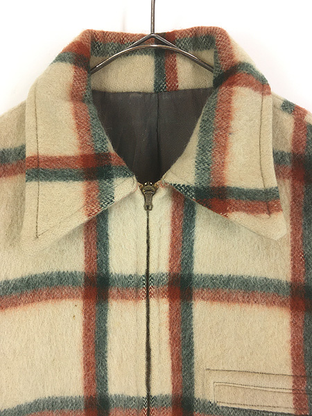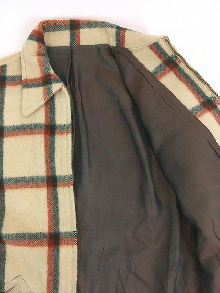 古着 50s CROWN スプリング ジッパー 好配色 チェック ヘビー ウール デトロイト ワーク ジャケット L位