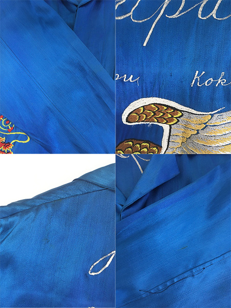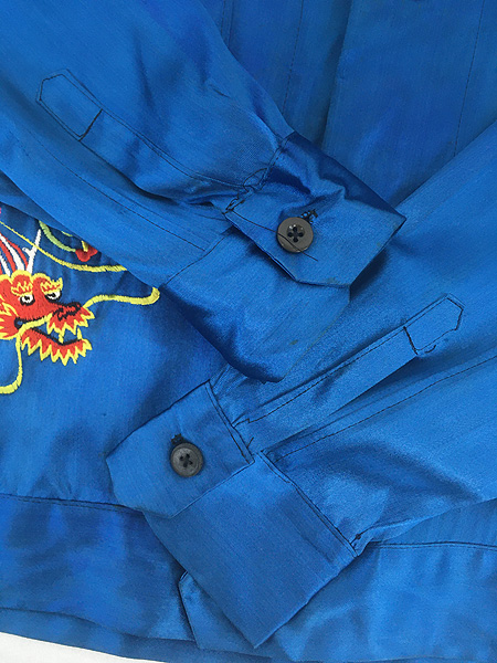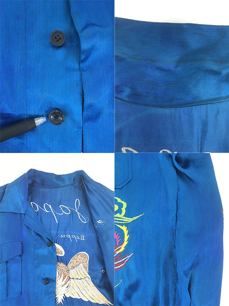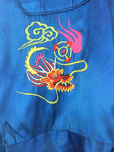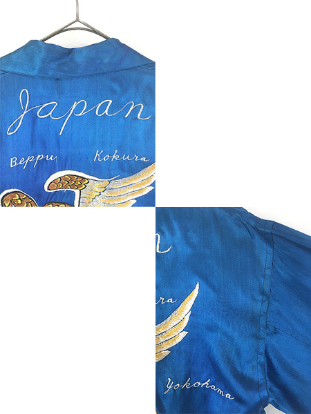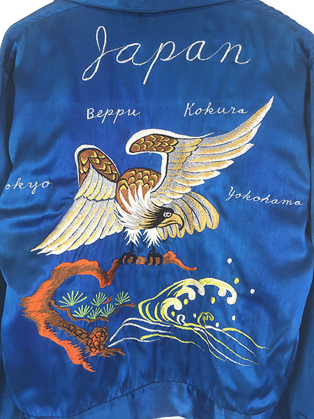 古着 50s 「Japan」 豪華 鷹 松 波 龍 ドラゴン 比翼 開襟 光沢 サテン スカ スーベニア シャツ ジャケット XL位