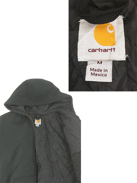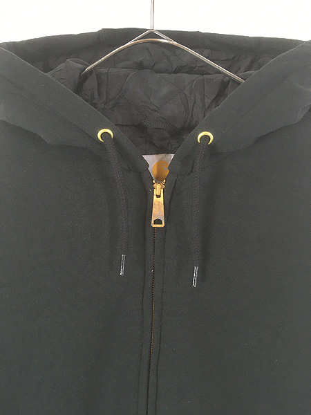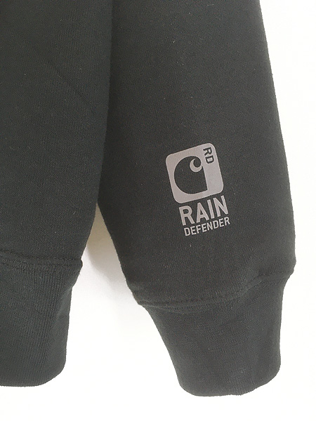 古着 Carhartt ワンポイント パッチ 「Rain Defender」 撥水 パデット スウェット ジップ パーカー ブラック M