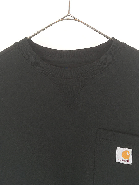 古着 Carhartt ワンポイント パッチ ポケット付 前V スウェット トレーナー ブラック L