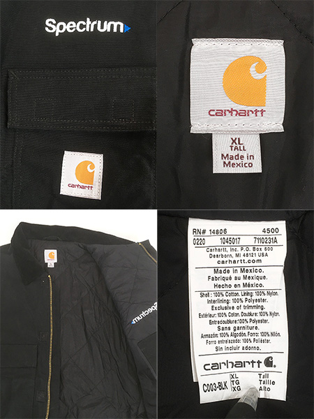 古着 Carhartt BLK ブラック ダック パデット トラディショナル コート XL Tall