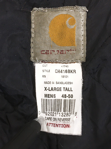 古着 Carhartt BLK ブラック ダック パデット トラディショナル コート XL Tall