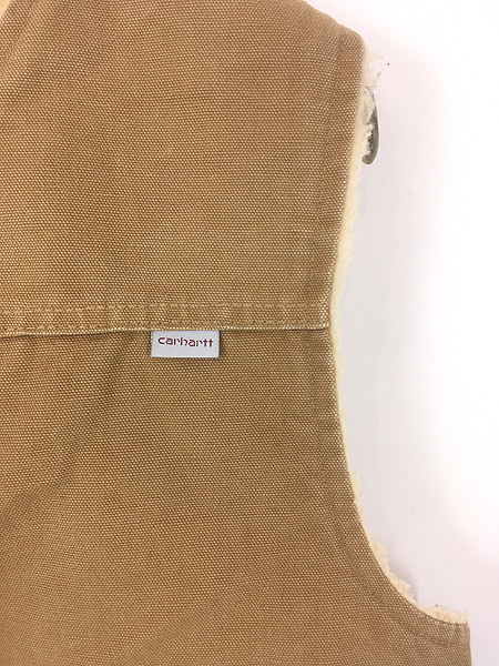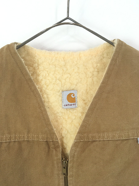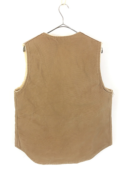 古着 80s USA製 Carhartt 裏ボア オールド ブラウン ダック Vネック ワーク ベスト M