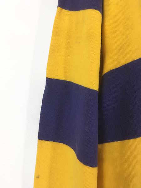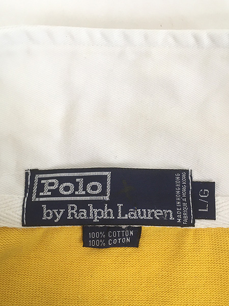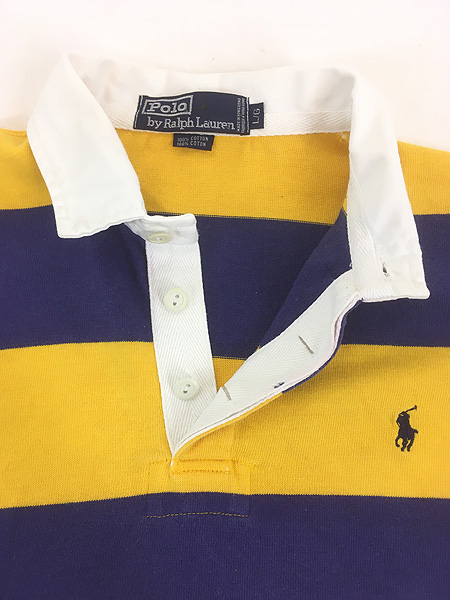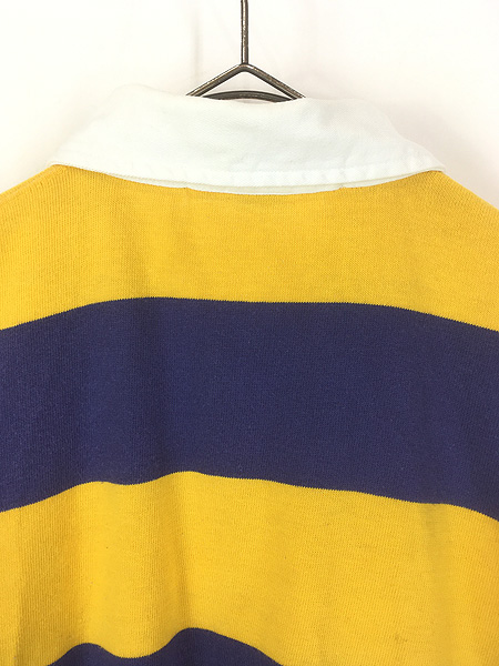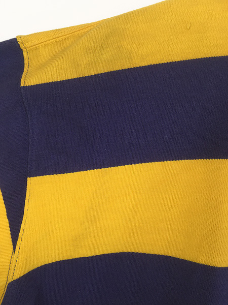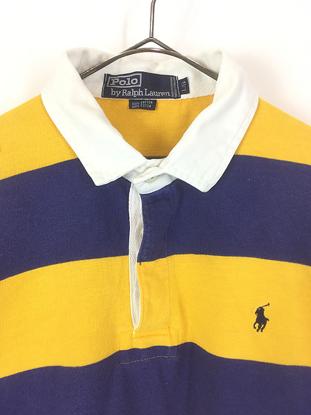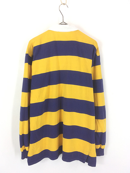 古着 90s Polo Ralph Lauren イエロー×ネイビー ワイド ボーダー ラガー ラグビー シャツ L