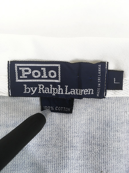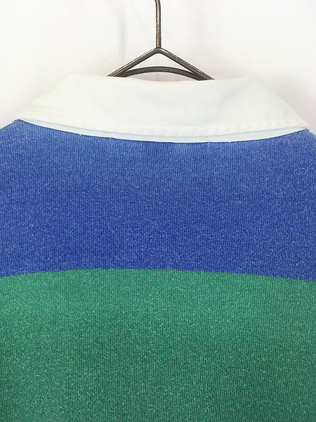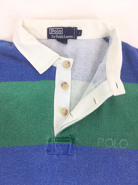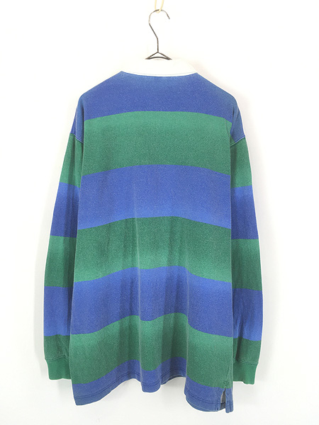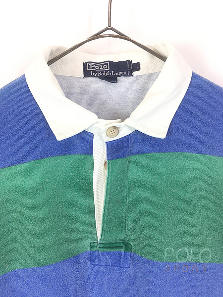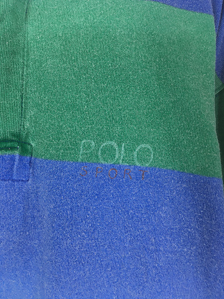 古着 90s Polo Ralph Lauren 「POLO SPORT」 ブルー×グリーン ワイド ボーダー ラガー ラグビー シャツ L