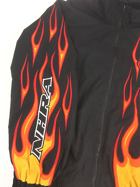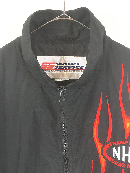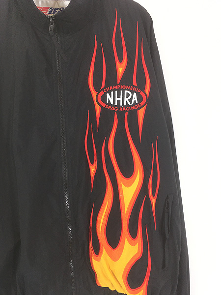 古着 90s NHRA ファイヤー パターン 刺しゅう レーシング ナイロン ジャケット L