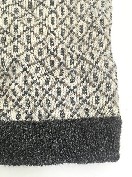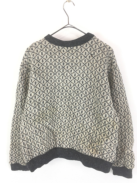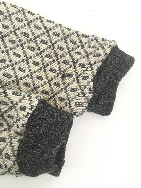 レディース 古着 80s Norway製 LL Bean ダイヤ チェック ハート ウール ニット カーディガン M