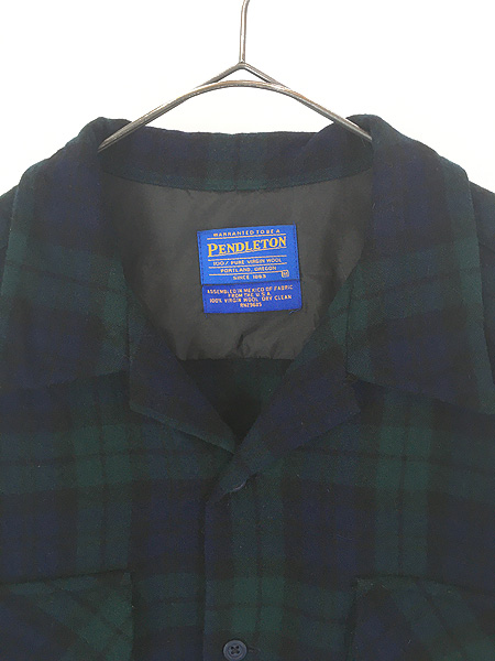 古着 90-00s Pendleton Authentic Black Watch Tartan ブラックウォッチ 開襟 ボックス ウール ボード シャツ M