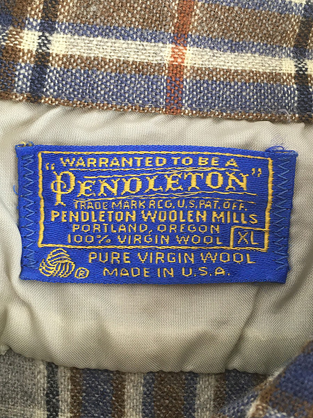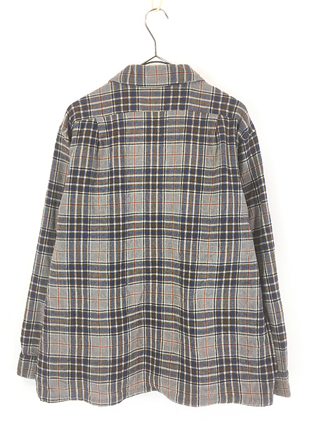 古着 70s USA製 Pendleton グレー タータン チェック 開襟 ボックス ウール ボード シャツ XL
