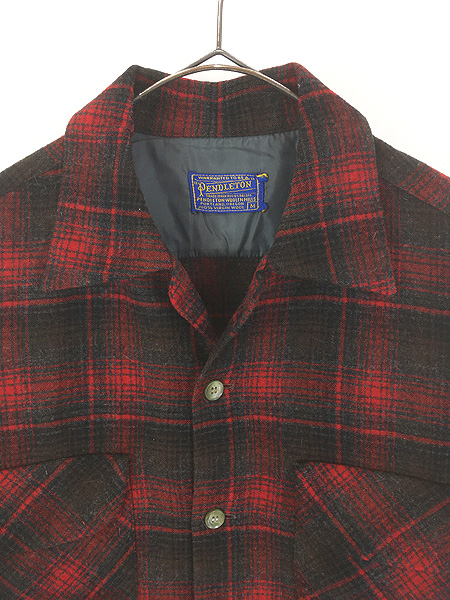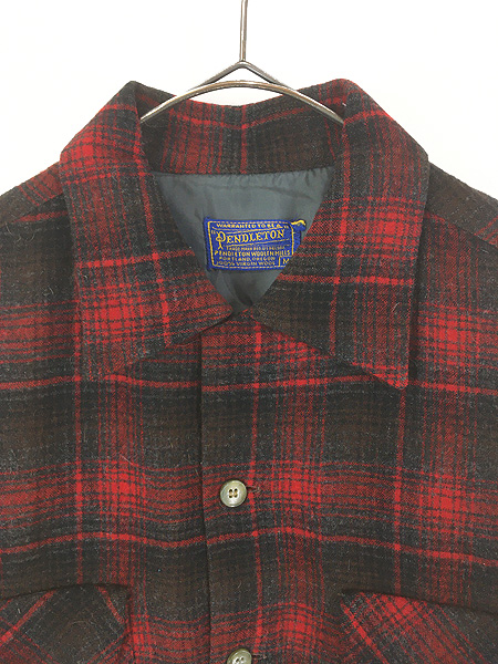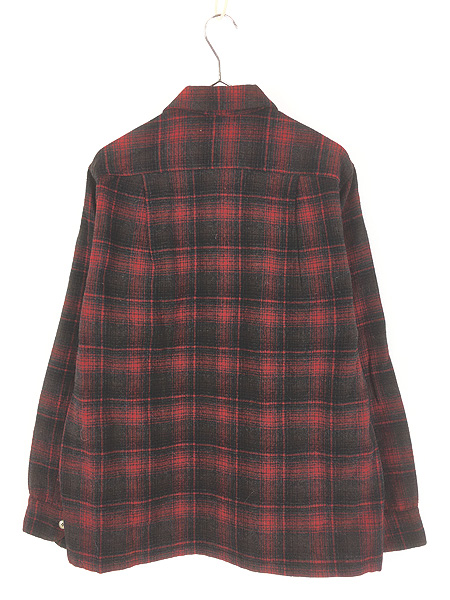 古着 60s Pendleton ベークライトボタン 好配色 レッド × ブラック チェック 開襟 ボックス ウール ボード シャツ M