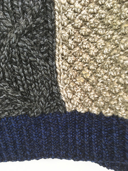 ポップコーン編含め色ごとに編みが異なるクレイジーパターン。