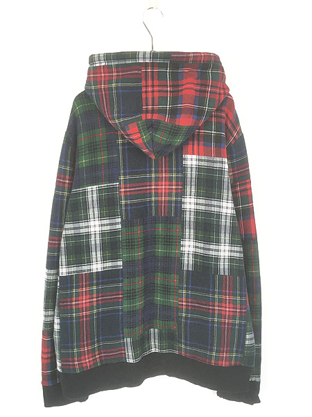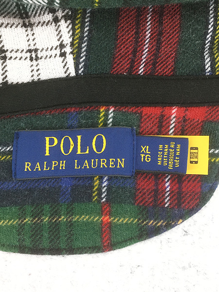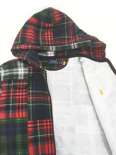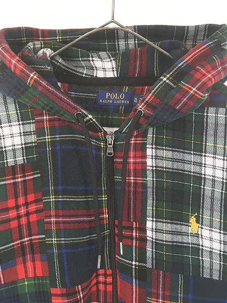 古着 Polo Ralph Lauren マルチ チェック パッチワーク プリント スウェット ジップ パーカー XL
