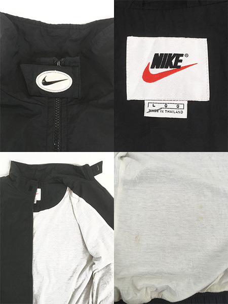 古着 90s NIKE 裏地 天竺 エナメル ロゴ パッチ アーム ライン ナイロン ジャケット L