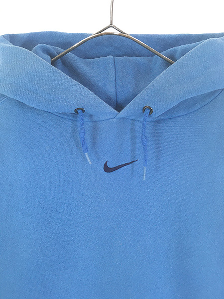 古着 90s USA製 NIKE センター スウォッシュ ロゴ 刺しゅう スウェット パーカー ライトブルー M