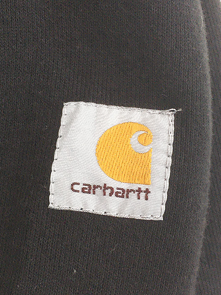 古着 10s Carhartt ワンポイント ソリッド 前V スウェット トレーナー ブラック XL