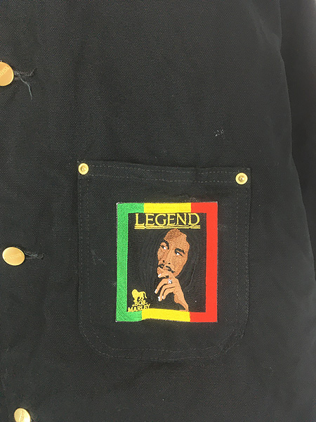 古着 10s Carhartt 裏地 ブランケット BLK ブラック ダック 「Bob Marley」 刺しゅう ミシガンチョア カバーオール ジャケット XXL