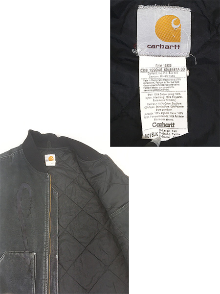 古着 00s Carhartt BLK ブラック ダック 首リブ パデット ベスト XL Tall