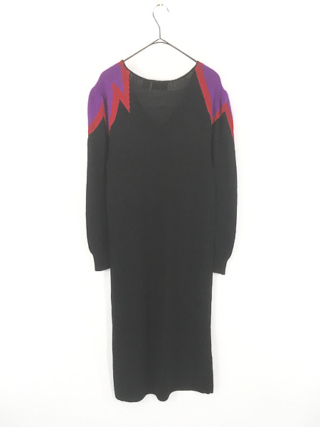 レディース 古着 80s Megalia アート パターン レーヨン モヘア ニット ワンピース ロング丈 M