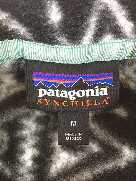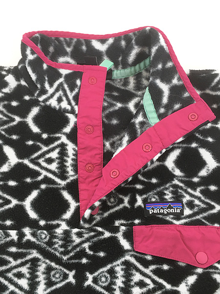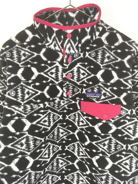 レディース 古着 17s Patagonia ネイティブ 魚 総柄 シンチラ スナップT フリース ジャケット M