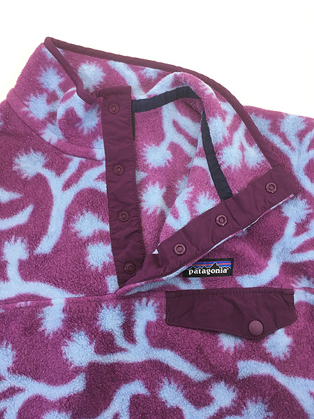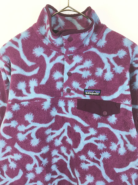 レディース 古着 18s Patagonia 植物 ボタニカル 総柄 シンチラ スナップT フリース ジャケット M