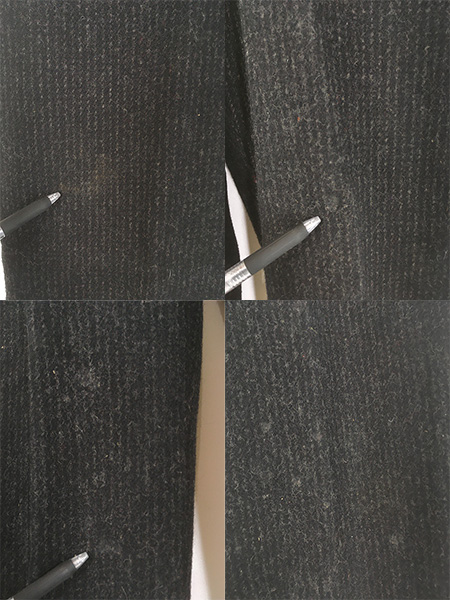 状態判断はなるべく客観的な記載を心がけておりますが、人により感じ方にも若干の差異がありますので、ダメージや汚れといっても規模の大小など明確な区別による言及ができない面がありますのでご了承下さい。特に、裏地やポケットの中などの表に見えない部分は多少汚れやダメージがあっても説明を省いていることがございます。