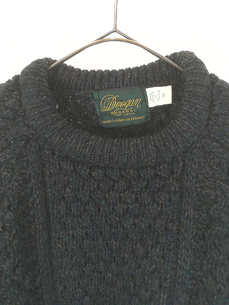 古着 80s Ireland製 Doogan Donegal ポップコーン編 ローゲージ ウール アラン フィッシャーマン ハンド ニット セーター 44