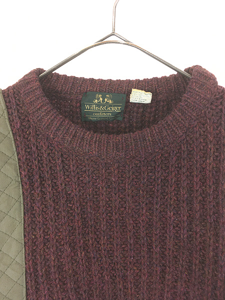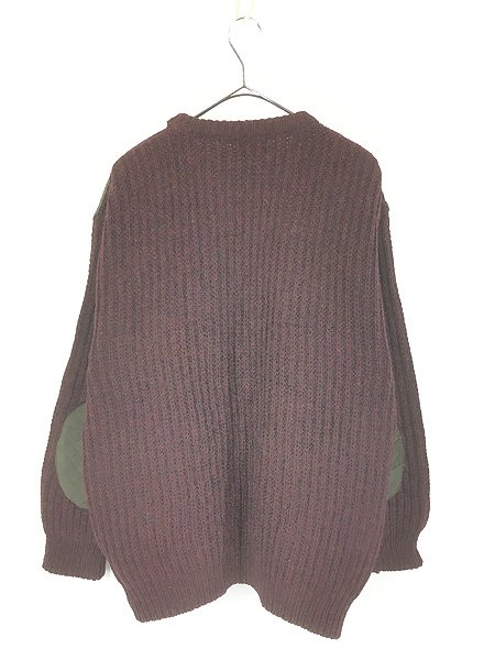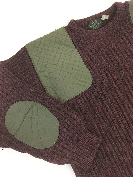 古着 80s Ireland製 Willis&Geiger シューティング パッチ 畦編み ローゲージ ウール ニット セーター M