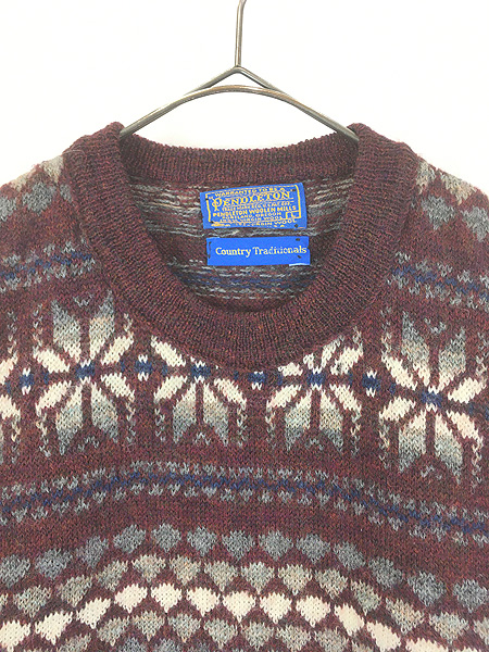 古着 80s USA製 Pendleton 「Country Traditionals」 雪柄 スノーフレーク ボーダー ウール ニット セーター L
