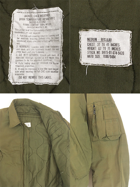 古着 80s 米軍 CVC ミリタリー パデッド アラミド タンカース ジャケット M-R