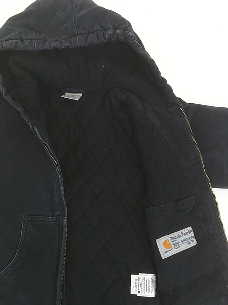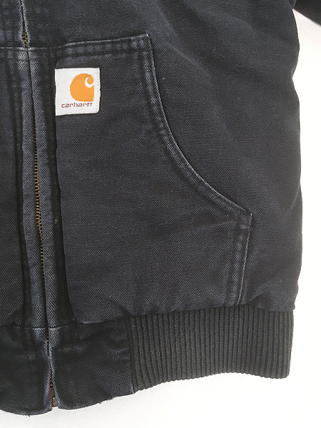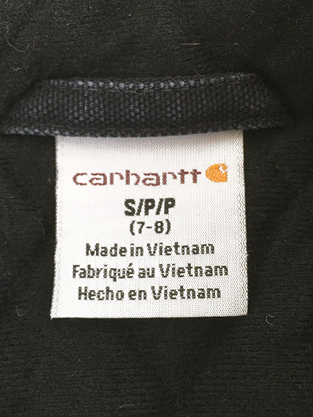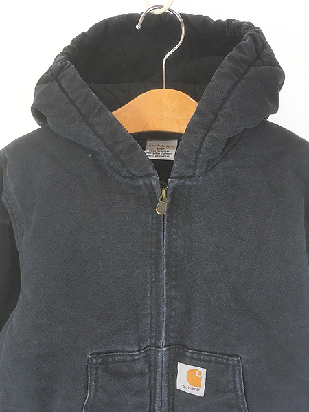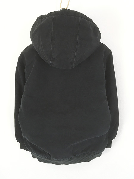 キッズ 古着 Carhartt 防寒 裏地 キルティング ダークネイビー ダック ワーク アクティブ パーカー S 7-8歳位