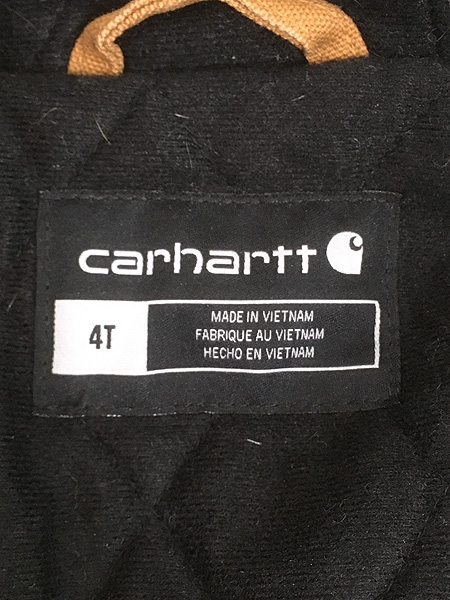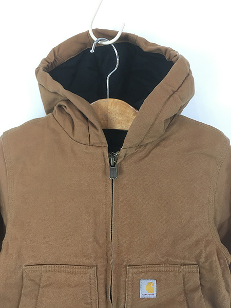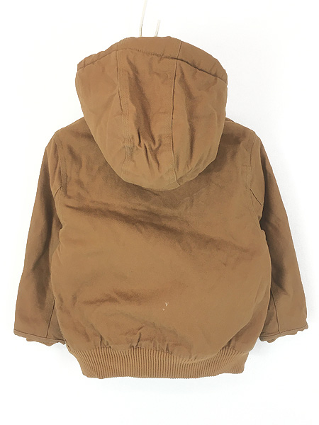 キッズ 古着 Carhartt 防寒 裏地 キルティング セパポケ ブラウン ダック ワーク アクティブ パーカー 4歳位