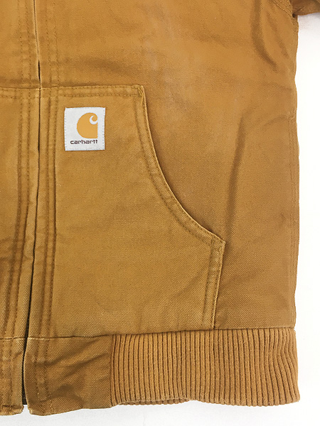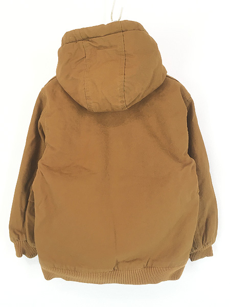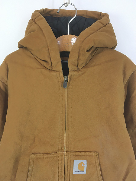 キッズ 古着 Carhartt 防寒 裏地 キルティング ブラウン ダック ワーク アクティブ パーカー S 7-8歳位