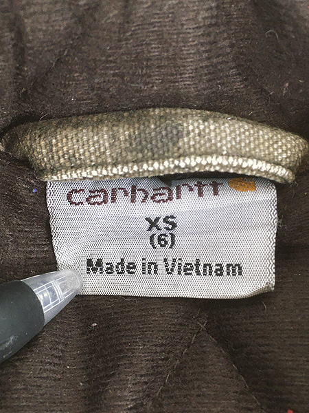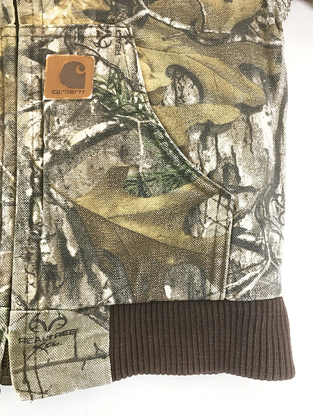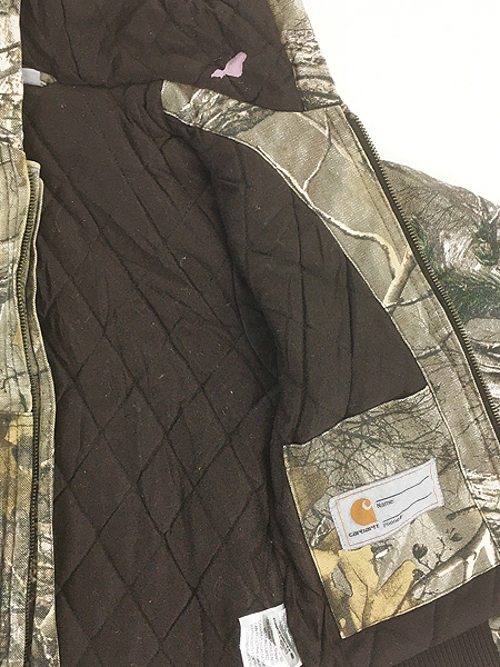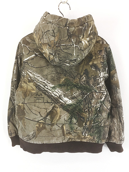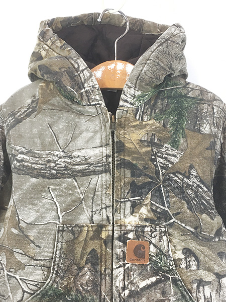 キッズ 古着 Carhartt 防寒 裏地 キルティング リアルツリー カモ 迷彩 ダック ワーク アクティブ パーカー XS 6歳位