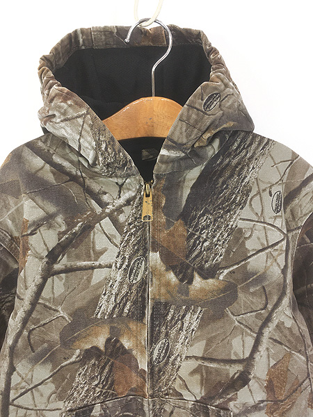 キッズ 古着 00s Carhartt 裏地 メッシュ リアルツリー カモ 迷彩 ダック ワーク アクティブ パーカー L 10-12歳位