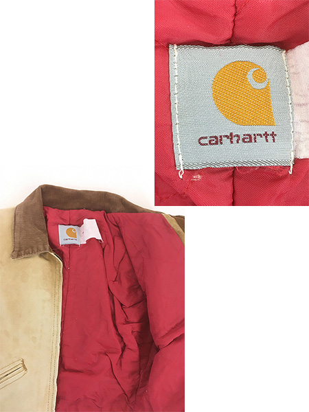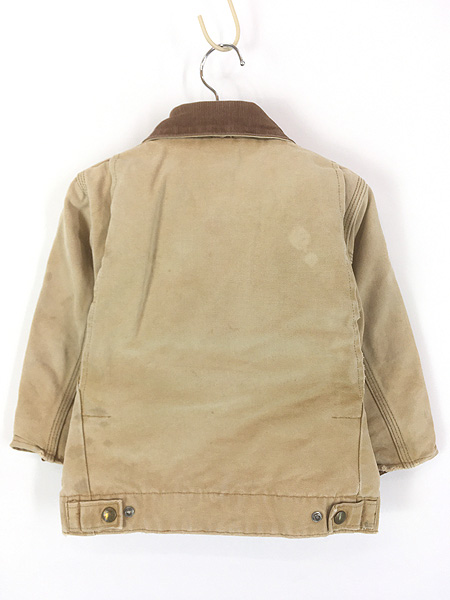 キッズ 古着 80s- Carhartt レッド キルティング ライナー ブラウン ダック デトロイト ジャケット ポケットなし 5歳位