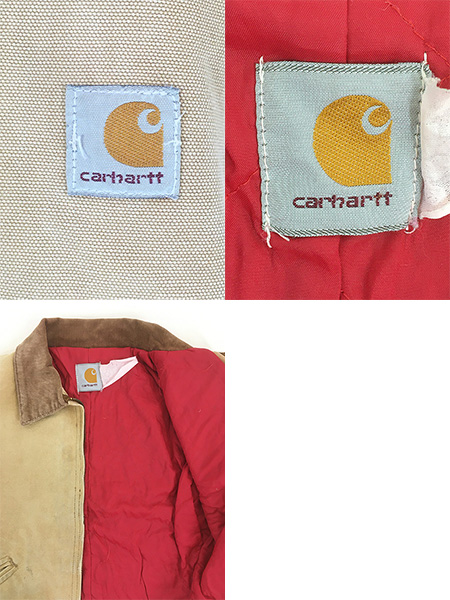 キッズ 古着 80s- Carhartt レッド キルティング ライナー ブラウン ダック デトロイト ジャケット ポケットなし 7歳位