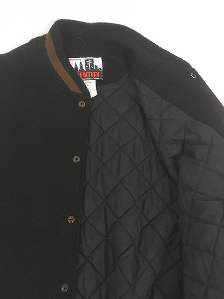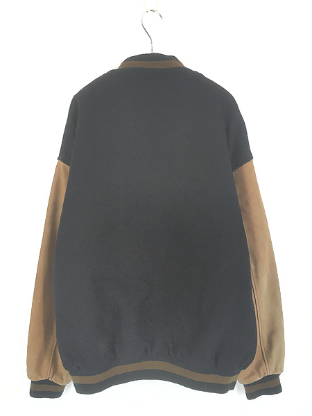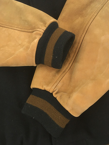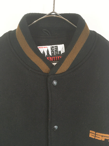 古着 90s Canada製 「ESPN」 テレビ 放送局 本革 レザー袖 メルトン ウール スタジアム ジャケット スタジャン XL