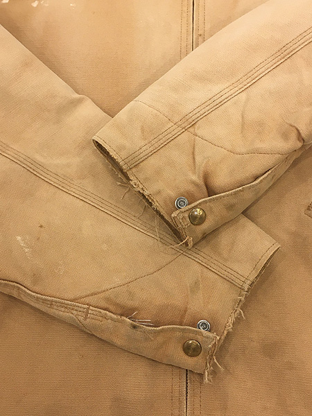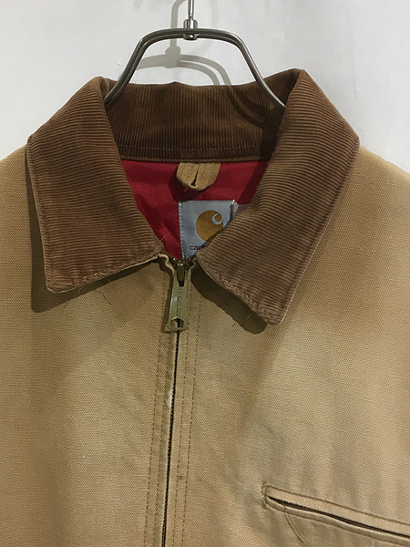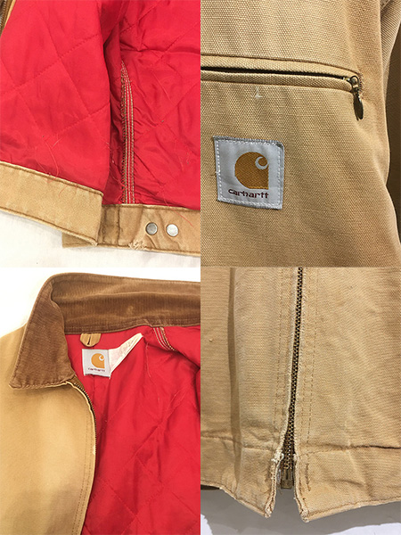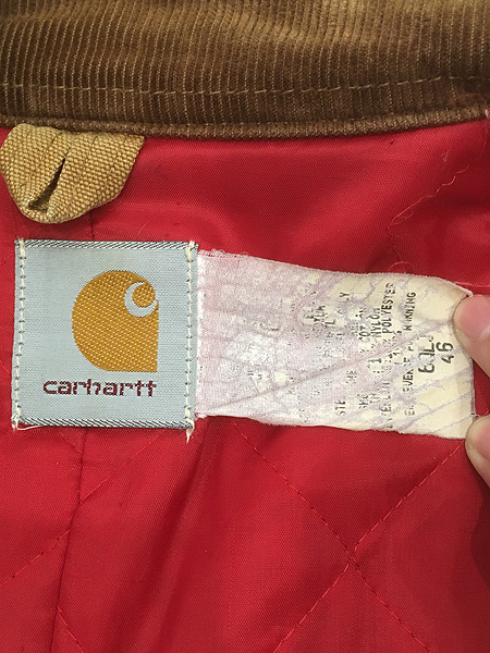 古着 80s- Carhartt レッド キルティング ライナー フェード ブラウン ダック デトロイト ジャケット 46