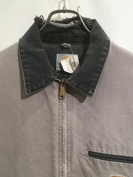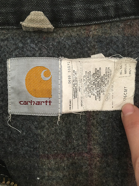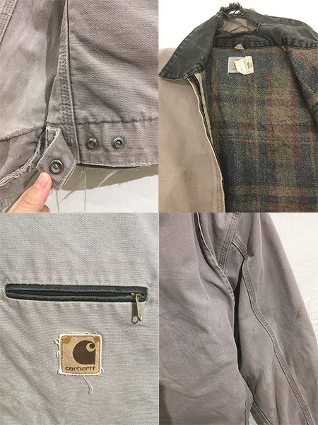 古着 90s USA製 Carhartt 裏地 チェック ブランケット レアカラー!! CMT セメント グレー ダック デトロイト ジャケット XL