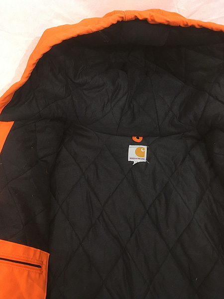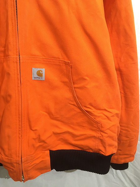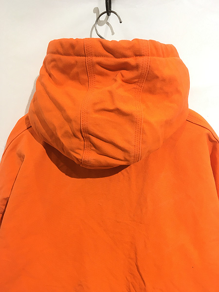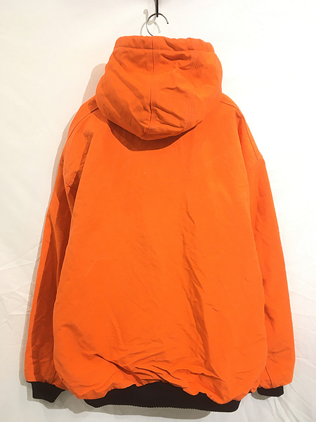 古着 10s USA製 Carhartt レアカラー!! BLZ ブライト オレンジ ダック 防寒 パデット アクティブ パーカー ジャケット XXL