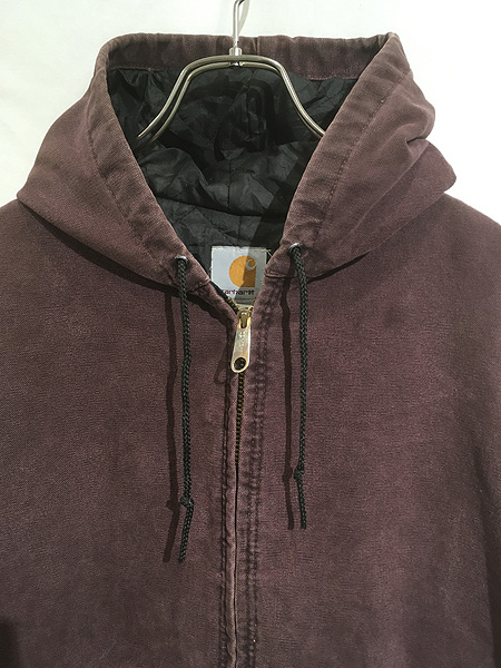 古着 90s Carhartt BRG バーガンディー ダック 防寒 パデット アクティブ パーカー ジャケット XXL