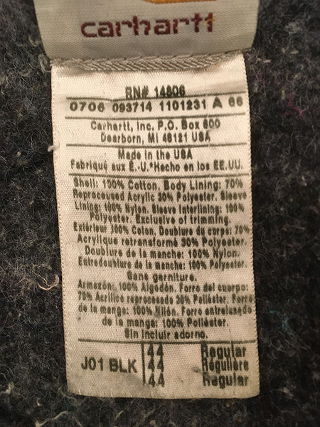 古着 00s USA製 Carhartt 裏地 ストライプ ブランケット BLK ブラック ダック デトロイト ジャケット 44