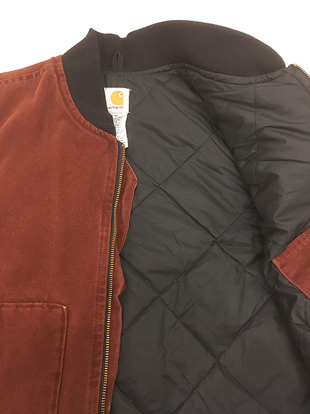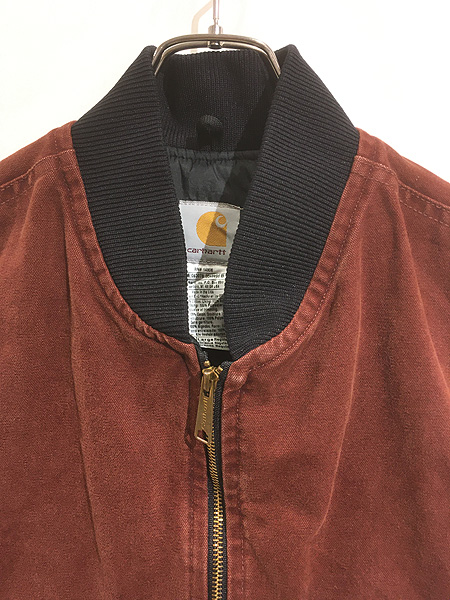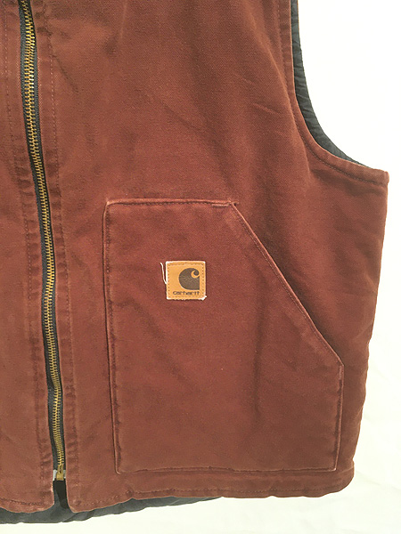 古着 00s USA製 Carhartt CLY チェリー レッド ダック 首リブ パデット ベスト L