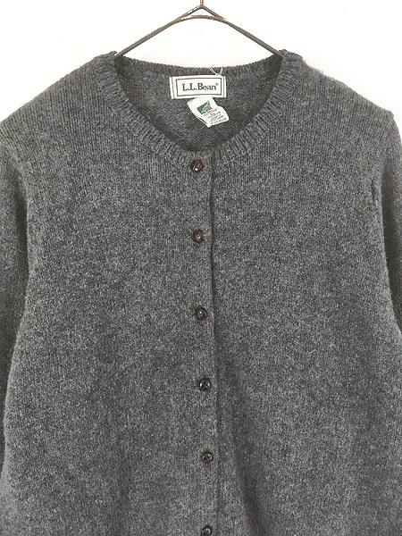 レディース 古着 90s Scotland製 LL Bean 無地 ソリッド スカラップ デザイン ウール ニット カーディガン L