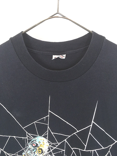 古着 90s USA製 Wild Oats 蜘蛛の巣 スパイダー ウェブ スカル ボーン Tシャツ XL
