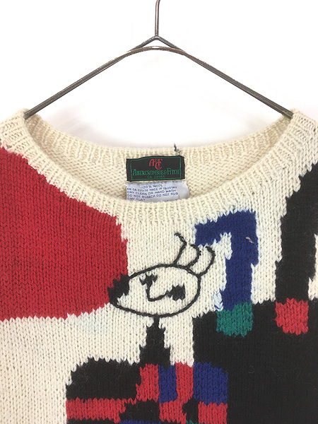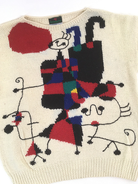 古着 80s ウルグアイ製 Abercrombie&Fitch ジョアン ミロ 「逆立ちする人」 アート ウール ニット セーター M